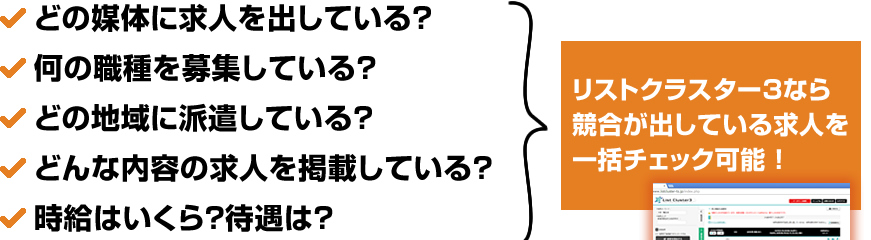 インターネット上のあらゆる求人媒体を一括検索・リストアップできます。