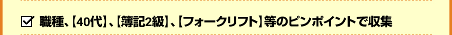 インターネット上の求人情報を職種や雇用形態で絞込みすることができ、さらに「簿記3級」や「40代」などフリーワード検索ができるのでマッチング率が大幅にアップします!